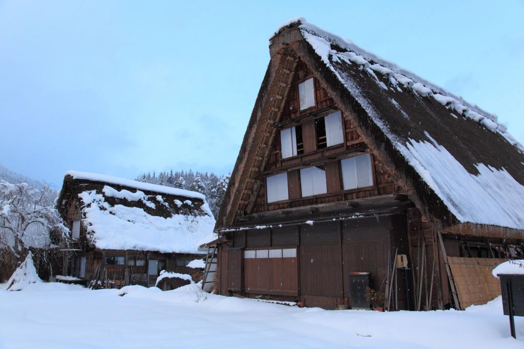 合掌造りの民家が並んでいます。手前の物はだいぶ規模が大きいです。