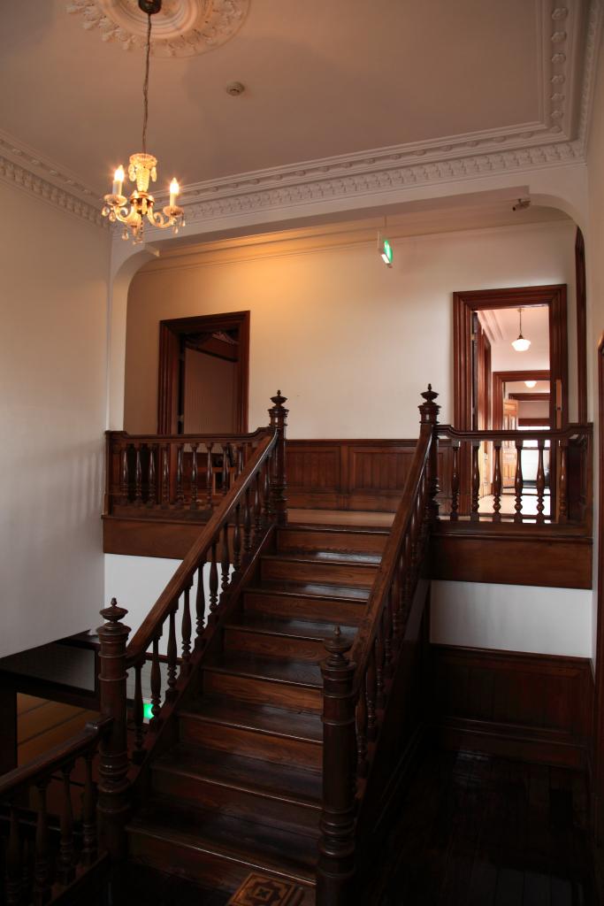 斜陽館の二階。純和風の一階からガラリと趣を変えて、瀟洒な洋風の作りになっています。