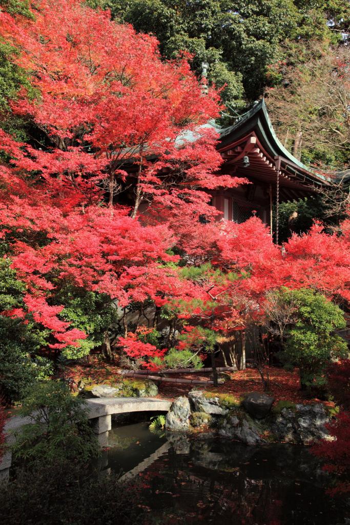 京都は山科にある毘沙門堂境内の高台弁才天と紅葉です。