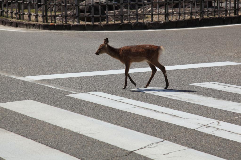 道路を渡る鹿