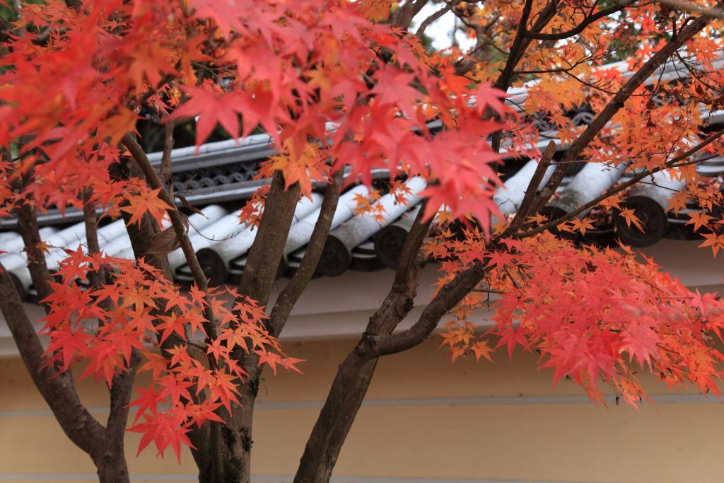 京都有数の紅葉の名所、光明寺門前に色づく紅葉です。